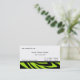 Cartão de stripe de zebra preto e verde com bastante espaço em branco para informações importantes de contato.