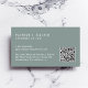 Cartão de visita verde de sábio mínimo e elegante com seu nome, título e informações de contato (como email, telefone, nome firme e endereço de correio) em letras brancas, simples e modernas. Introduza o seu endereço de Web site para criar um código de QR verificável ligado ao seu Web site, perfis de redes sociais ou outra plataforma que mostre o seu trabalho, fazer fácil para outros explorarem a sua experiência. No verso, personalize texto adicional ou deixe vazio.