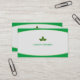 Três folhas elegantes e modernas em Cartões de visitas verdes e brancos de fundo. Todos os textos e logotipos prontos para serem personalizados.