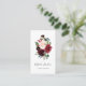 Os cartões de visitas verticais elegantes para floristas, designers florais ou profissionais de planeamento de eventos apresentam um buquê de tom de joia vibrante de "burgundy marsala" e flores cor-de-água rosadas, cor-de-rosa, com folhagem verde de eucalipto e botões azuis marinhos. Personalize com seu nome e/ou nome comercial abaixo e adicione suas informações de contato ao verso em branco em um fundo azul rico em marinho