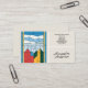 Cartões de visitas com uma ilustração desenhada à mão de uma janela de vidro manchado com um céu azul, nuvens brancas, edifícios vermelhos, verdes e amarelos: perfeito para artista de vidro manchado, mas também design de interiores, florista, designer artístico, planejador de casamento, etc