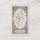 The design features an elegant mystical illustration of a manicured hand and nail polish brush framed by ornate tarot-inspired details, creating a unique celestial aesthetic that stands out from traditional salon business cards.