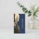 Cartão de visita de intérprete músico, com uma imagem de violino única definida em um fundo azul e branco marinho. As letras brancas e pretas podem ser personalizadas com suas informações. A parte traseira tem um código QR para você usar ou excluir. Excelente para promover seu negócio de música!