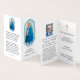 Lembre-se de seus queridos e carinhosamente abandonados com esta linda Virgem Maria segurando duas pombas brancas Cartões de Oração Sagrada. Na parte de trás está a bela Oração por Memória à Mãe Abençoada.