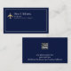 Cartão profissional azul-marinho elegante com informações básicas apenas... seu nome (estilo de fonte 'unica um') com ocupação personalizada relacionada ao avião (piloto) e a imagem de um pequeno avião azul... e informações de endereço e profissão no verso...
