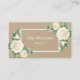 This elegant rustic business card features watercolor painted white roses and eucalyptus leaves greenery on a Kraft paper background. With a scannable qr code on the backside.