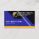 Cobrir apresenta um design geométrico futurista. No topo da camada geométrica preta, está um logotipo ouro global que você pode usar ao lado de seu nome comercial e dos detalhes de contato. Para o sul, a camada azul é o seu nome, cargo e legenda de slogan para divulgar seus serviços.