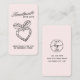 Cartão De Visita Whimsical Handmade with Love Script Heart Bow