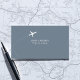 A modern and minimalist business card with basic information only... your name ('unica one' font style) with custom travel related occupation (travel agent) and with a white airplane with dotted route on a gray blue background... and address, email and phone at the back...