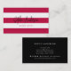 White Stripes e cartão de visita de Script Moderno de Cor Personalizada que apresentam a cor de fundo editável na parte frontal (clique em personalizar e altere a cor de fundo de rosa para outra cor) e na parte traseira. É fácil personalizar; substitua o texto do marcador de posição por suas próprias informações. Para obter mais opções, como alterar a fonte e seu tamanho/cor ou o espaçamento entre letras, clique no botão "Personalizar". *Observe que a Marca d'água do Zazzle que aparece na visualização de zoom NÃO aparecerá no produto impresso final. © Rosewood e Citrus