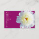 Peônia branca no cartão de visita roxo.