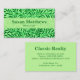 William Morris Art Nouveau padrão têxtil de ramos estilizados de salgueiro e folhas em tons de verde-jade profundo sobre um cartão de visita verde-claro-jade