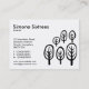 Um cartão de visita moderno com um atraente e original motivo florestal. Adequado para uma variedade de negócios. Pronto para ser personalizado. Os detalhes da empresa estão na frente com o nome e os dados de contato no verso, em um fundo branco. Tonalmente invertido da frente.