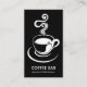 Um cartão de visita atrativo com uma xícara de café quente. Nome da empresa e tipo de negócio na frente com nome e outros dados de contato no verso com uma versão menor do motivo da xícara de café frontal. Nesta versão, o motivo frontal é branco em preto ou escuro e preto em branco ou um tom claro no verso.