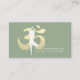 Instrutor de Meditação do Yoga Studio / Treinador de Vida / Healer / Mestre de Reiki / Modelo de cartão de negócios de Terapia de Massagem - Pose de Meditação de Yoga Moderna / Pose de Árvore (Vrksansana) e Símbolo Faux Gold Foil OM em Fundo de Cor Verde.
