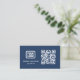 Streamline your networking with high-impact style using this "Modern Navy" minimalist QR code business card. Custom-designed for a sophisticated, contemporary aesthetic, this premium card features a deep, professional blue palette paired with bold, clean typography that highlights your brand identity and digital contact info. More than just a card, it serves as a soulful, artisanal tool that turns every handshake or client meeting into a high-quality, personalized experience for your professional network. Simply click "Personalize" to upload your unique company logo and a direct QR code to your website or portfolio, ensuring you leave a polished, professional, and joyful impression as you scale your business.