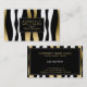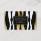 Os elegantes tons preto branco e dourado zebra listram modelo de cartão de negócios personalizável de dois lados.
