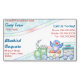 Adorável Cartão de visita magnético apresenta um trem de brinquedo com um bebezinho feliz cavalgando nele. Acentos arco-íris e fundo aqua ligeiramente pontilhado. Padrão correspondente na parte traseira da placa. O texto está pronto para você personalizar com suas informações. Funcionaria bem para qualquer negócio relacionado a crianças, por exemplo, creche, babá ou boutique.