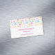 Cartões de visitas magnéticos profissionais com um padrão delicioso e caprichoso. Corações, letras de amor, muffins, tulipas e cerejas trazem alegria e felicidade a este pequeno padrão fofo. Bonito cores pastel.