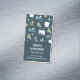 Cartões de visitas com um padrão festivo caprichoso. Ursos polares, renas, árvores, raposas e flocos de neve. Num fundo verde escuro.