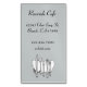 Um modelo de cartão de negócios magnético de restaurante personalizado com texto de script e um conjunto de utensílios em um bonito guardanapo bordado em preto, branco e cinza. Personalize-o para alterar as fontes, adicione seu próprio logotipo e muito mais, até salve seu design para mais tarde.