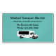 Ímanes de cartão de visita para veículos de transporte médico concebidos com um veículo acessível a cadeiras de rodas no fundo e um simples layout de modelo que podem ser personalizados online. Concebidos para serviços de transporte destinados a doentes que se dirigem a cadeiras de rodas ou a doentes com deficiência médica que necessitem de um serviço de transporte ou de transporte.