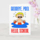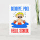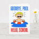 Adeus, Piscina Alô, Escola De Volta Ao Cartão De Primeiro Dia. Excelente para um garoto ou garota começando um novo ano escolar. Excelente para o primeiro dia de escola. Ele mostra um garoto de desenho chorando em uma piscina. Na dentro diz-se "Espero que tenhas um ano escolar de excelente!"