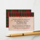 Cartão de cerimônia rústico colorido feito em um olhar antigo de papel, com o padrão vermelho, verde, azul, amarelo e branco da xadrez real Stewart tartan, no topo e cobrindo as costas. O texto preto e vermelho está pronto para personalizar o seu dia especial. Produtos correspondentes disponíveis.