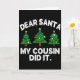 Cartão Dear Santa My Cousin Did It Funny Christmas Quote