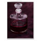 Flask segurando sangue congelado, em uma toalha vermelha farinhenta. Muitas aranhas pretas rastejando por aí e um rosa preto solteiro deita na mesa.