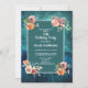O marinho azul-lacrimejante, texturizado pelo décimo sexto convite de aniversário, com delicado cor-de-rosa e cor-de-pêssego floral. O verso deste convite é um design de faixa branca e verde diagonal.