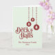 Estes elegantes cartões de Natal "Deck the Halls" apresentam um design minimalista, não fotográfico, com fundo verde claro e tipografia vermelha escura. Adequado para familiares e membros corporativos. Há espaço abaixo do design principal para você adicionar seus próprios detalhes personalizados. Você também pode personalizar o dentro de mensagem.