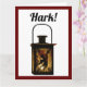 Originalmente escrito em 1739 por Charles Wesley, o amado hino Hark, os anjos arauto cantam! tornou-se agora uma das músicas de Natal mais populares e reconhecíveis de todos os tempos. Curiosamente, a peça foi originalmente chamada Hymn para o Dia de Natal e não incluiu a famosa linha de abertura! Felizmente, o tempo preservou esta preciosa música e cantar juntos permite-nos refletir sobre paz, alegria e a celebração do nascimento do Cristo neste feriado de inverno. Celebre o seu amor pela época de Natal com esta design personalizável com uma lanterna iluminada por uma vela luminescente com uma silhueta de um anjo ou de uma cherubim tocando um trompete. A palavra "Hark" é escrita acima em caracteres festivos. Interior: Vazio