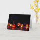 Esta placa apresenta uma foto das decorações de Halloween todas iluminadas em um fundo escuro na frente. O texto no dentro pode ser personalizado para o destinatário deste cartão.