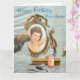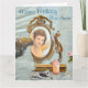 Um cartão de aniversário feliz bi-lingual com romance em mente, para todos vocês francófilos. Desligamento francês de uma rotina de maquiagem feminina com um espelho rachado.