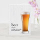 A definição do dicionário de BEER com um copo de cerveja espumante em madeira rustica de madeira lavada em branco para um aniversário.