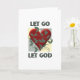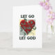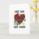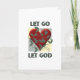 Deixe Deus ir e deixe Deus ser uma mensagem inspiradora para aqueles que estão em recuperação, ou para qualquer um que busca liderar uma vida mais espiritual. Este cartão tem um coração com vinhas cercando-o em fundo verde e amarelo.
