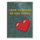 Este cartão tem um fundo demin desvanecido e envelhecido, tal como os seus jeans favoritos. As palavras que eu estava pensando em você hoje, são interpretadas como se bordadas com um grande coração bordado vermelho.