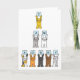 Três filas de gatos de desenho animado em pé nas patas traseiras. Os gatos estão segurando cartões coloridos azuis pastéis que têm letras naquele feitiço', lamento.