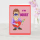 Peço desculpa. Homem segurando cartão com flor dizendo que sinto muito.