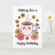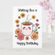 Um doce cartão desejando a alguém um feliz aniversário e um cheio de todas as coisas que eles amam! A frente do cartão é uma xícara branca e engraçada de café quente cercada por flores cor-de-rosa.