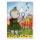 O gatinho pequeno faz um desejo em um sopro do dente-de-leão em um dia bonito do outono. Arte por Carmen Medlin.