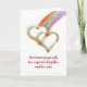 Este cartão original comemora o aniversário de casamento de uma filha especial e de sua esposa com um efeito colorido do airbrush de um término do arco-íris em dois corações de bloqueio.
