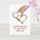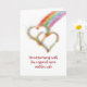 Este cartão original comemora o aniversário de casamento de uma sobrinha especial e de sua esposa com um efeito colorido do airbrush de um término do arco-íris em dois corações de bloqueio.