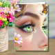 Um doce cartão para um amigo desejando-lhes um belo dia. Uma bela fada de olhos verdes com uma borboleta sobre sua ilustração na testa na frente. O dentro que te deseja um bom dia e tem uma buquê de margaridas com uma borboleta Monarca sobre eles.