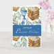 Este lindo desenho de Páscoa judaica apresenta uma ilustração em estilo aquarela de matzá empilhada, um cálice de vinho tradicional (cálice de kidush) e delicadas flores azuis entrelaçadas com galhos, tudo isso sobre um fundo suave e calmante. A barra azul elegante no desenho destaca a mensagem "Desejos alegres de Páscoa judaica". Este design atencioso e festivo captura o espírito do feriado, tornando-o uma maneira perfeita de enviar bênçãos e celebrar a alegria, a paz e a união da Páscoa judaica com os entes queridos.