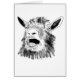 Cartão de cumprimentos com desenho engraçado de cabra gritando, perfeito para qualquer ocasião e uma ótima oportunidade para espalhar diversão e risadas com familiares e amigos. Cartão de cumprimentos de arte animal simples em preto e branco de cabra de fazenda divertida com expressões humorísticas. A maioria das pessoas não escolhe a vida de cabra, a vida de cabra as escolhe. Aqui está uma oportunidade de espalhar um pouco da vida de cabra com esta ilustração peculiar. Arte original da artista Catherine Sweetman.