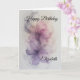 Cartão de aniversário delicado e feminino com flores lilás, rosa e cinza