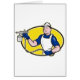 Ilustração do pintor do pulverizador com a arma da pintura pistola feita no estilo dos desenhos animados com forma oval no fundo branco isolado.