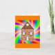 Envie uma faixa de cores com este cartão de saudação com uma casa de tijolos surreal e design de arco-íris girando. Excelente para aniversários, obrigado, nota, ou qualquer ocasião que exija uma mensagem ousada e criativa.